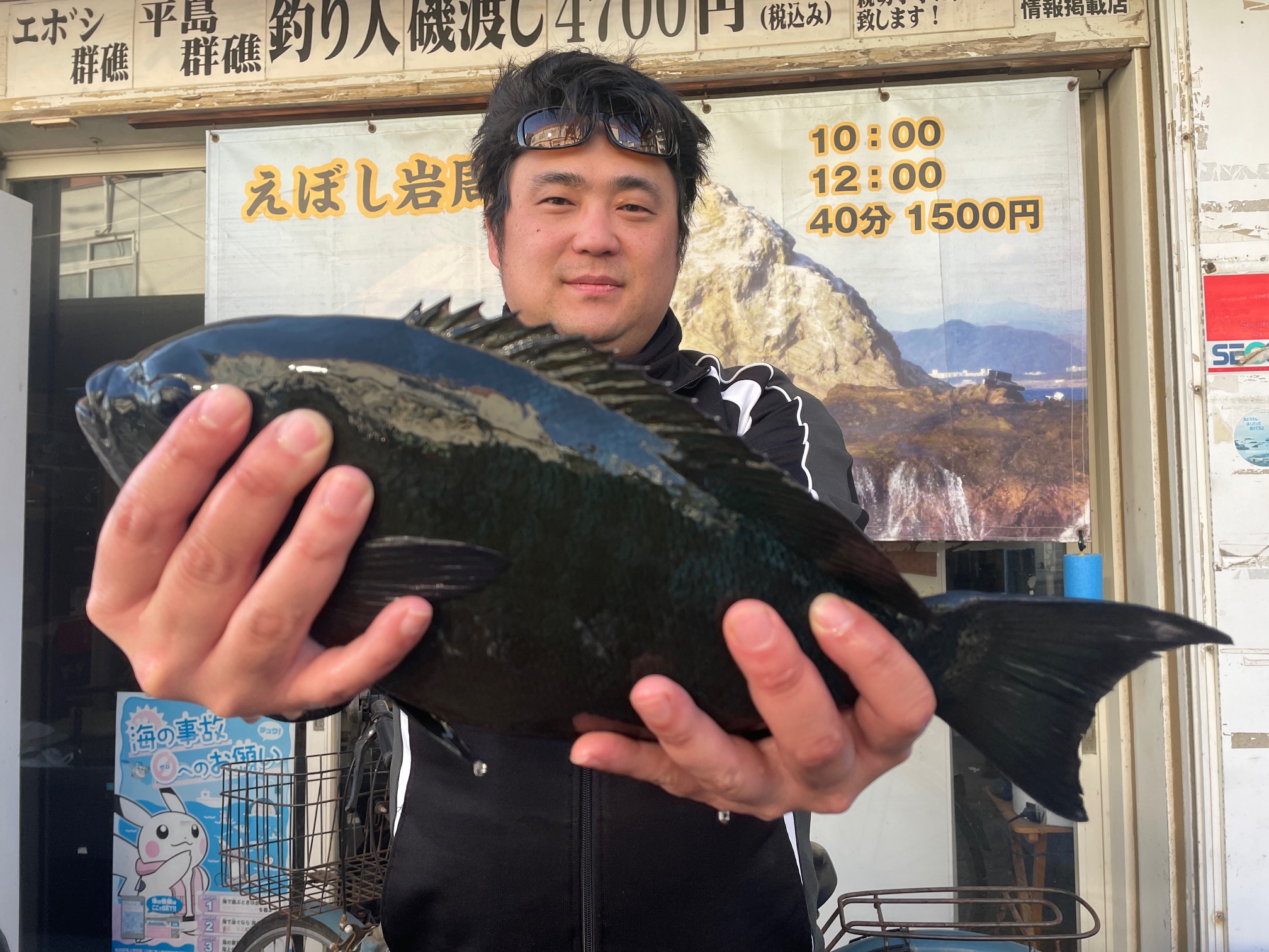 海は完全に凪になりましたね。新規のかたも多く32名のお客様に来て頂きました。全島問題なく乗れております。しかし今日は潮が動かない上、波気も無く午前中は凪倒れの感じでした。ほとんどメジナが口を使いません。ただ午後に入って大型のメジナが喰ってきましたね(^^♪得意のウ島から得意の海苔メジナで大型2枚は秋広氏、地元の若手、安田氏は今年初釣行で41㎝、相馬氏は終了目前、何度か海苔でアタリを掛けきれず最後の1投で見事40㎝をゲットとなりました(^^♪数は全く上がらず持ち込まれたのはこの4枚と安田氏の黒鯛44㎝のみでした。皆さんお疲れ様でした。明日も凪でしょう。